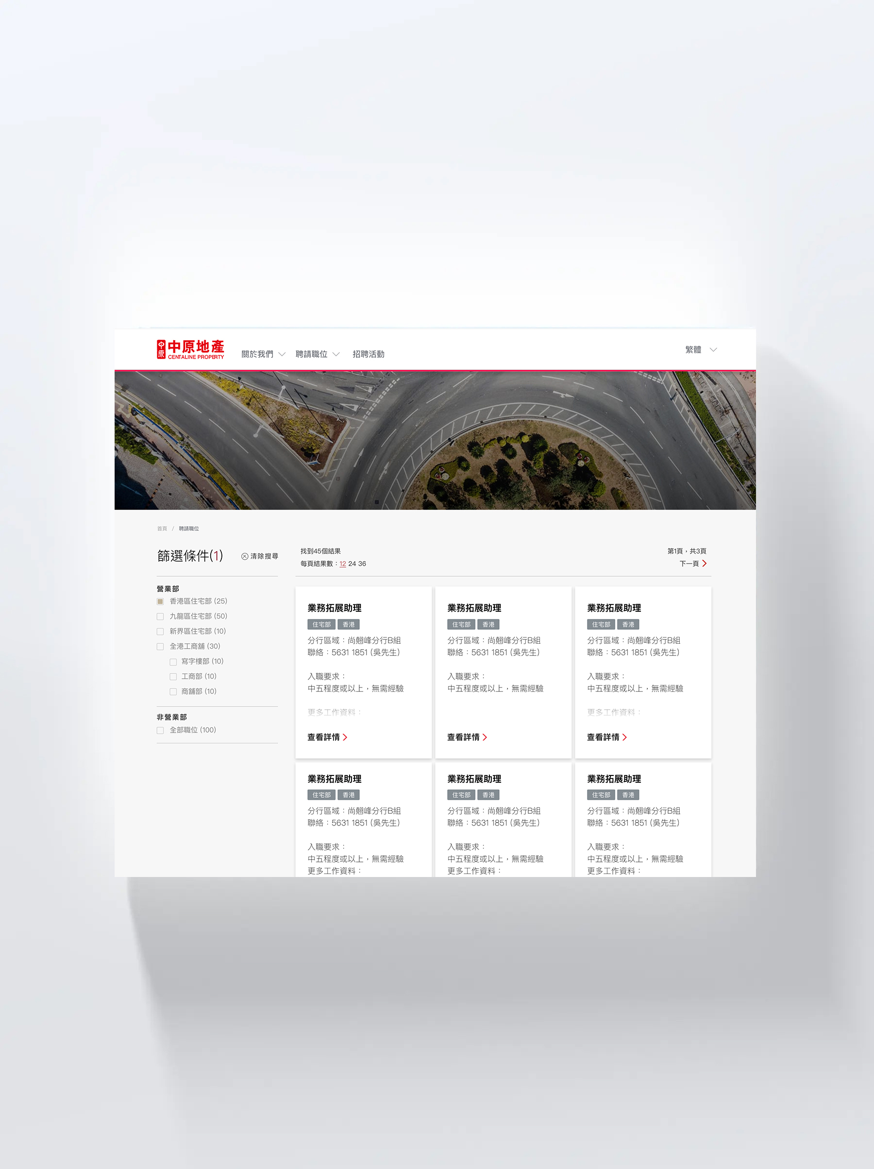 This is the job search portal of Centaline Property.com, one of the largest real estate agency groups in Hong Kong. Due to company expansion and growth, there are many job vacancies. Therefore, we created a search system page so job seekers who would like to join the company can easily find relevant jobs using our website.