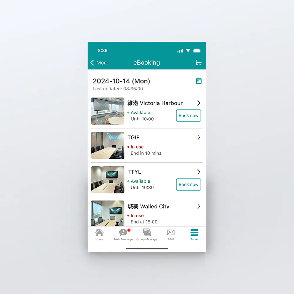To improve this, we developed a system that allows staff to reserve a room in two ways: through the internal app, or by scanning a QR code placed at the door of each meeting room. This way, staff who walk past an available room can instantly scan and book it on the spot, while others can plan ahead via the app.